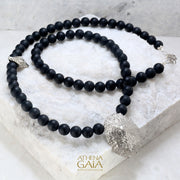 Inspired by Nature, this Seashell Silver and Onyx Necklace is the perfect way to celebrate the unparalleled beauty of the seashore. Crafted from 925 Sterling Silver with Onyx Beads, this necklace is the perfect for every day wear or to add a little charm to more formal attire.