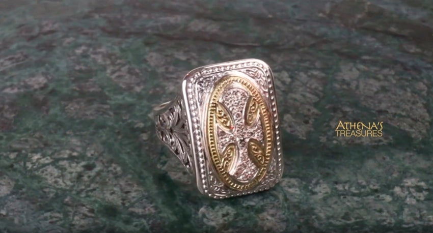 Diamond Maltese Cross Ring - 18k Gold & Sterling Silver Ring - Cocktail Ring