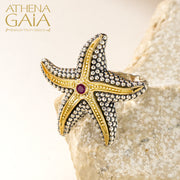 Thalassa Starfish Gemstone Ring (Large) - 18k Gold & Sterling Silver Ring - Cocktail Ring