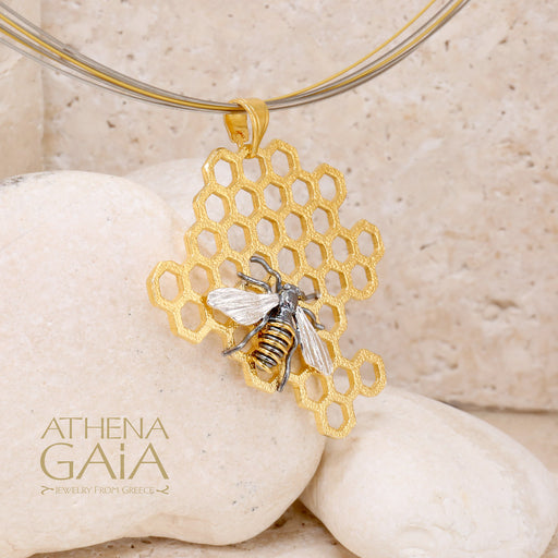 View full detailsOrganic Honeybee on Honeycomb Necklace - Gold Plated Sterling Silver Necklace