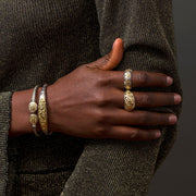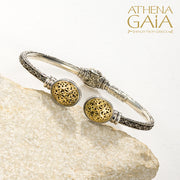 Mediterranean Oval Face Bracelet - 18k Gold and Sterling Silver - Hinged Bangle Bracelet
