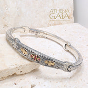 Patmos Ruby Cross Bracelet - 18k Gold and Sterling Silver - Flex Bangle Bracelet