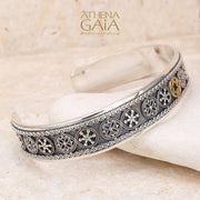 Star of David Open Bracelet - 18k Gold & Sterling Silver - Cuff Bracelet