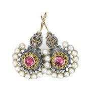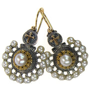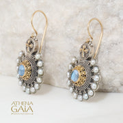 These Empress Fan Earrings are crafted from 18k Gold and Sterling Silver with Pearls surrounding a center Gemstone of your choice. They're easy to wear earrings with French wire hooks to keep them comfortable for all day wear. A timeless design, custom crafted to fit your personal vibe, and  perfect heirloom pieces to treasure forever.