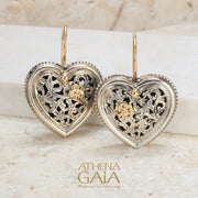 Garden Shadows Silver Heart Earrings - 18k Gold & Sterling Silver Earrings - French Wire Earrings