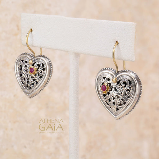 View full detailsHeart with Ruby Earrings - 18k Gold & Sterling Silver Earrings - French Wire Earrings