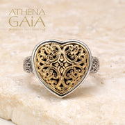 Mediterranean Heart Ring - 18k Gold & Sterling Silver Ring - Signet Ring