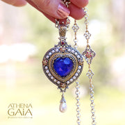 This stunning Pop Rocks Imperial Heart Pendant, winner of the 2021 JCK Jewelers’ Choice Award, combines absolute elegance, with classic Greek ornament. It's crafted from 18k Gold and 925 Sterling Silver with Ruby flowers with Diamond centers, a 20mm Quartz Doublet center stone with a Freshwater Pearl border, a Diamond on the bale, flanked by a Ruby below, and a teardrop Pearl enhancer. It's a true statement piece! The bale opens for easy mounting on most chain styles. This pendant is the definition of heirloom.