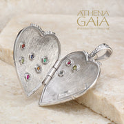 Silver Strawberry Heart Locket Pendant - 18k Gold & Sterling Silver Pendant