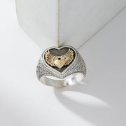 Winged Heart Ring - 18k Gold & Sterling Silver Ring - Signet Ring