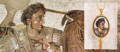 On the floor of the house of Faun in Pompeii lies a mosaic depicting Alexander the Great leading a cavalry charge at the battle of Issus. Luigina Rech’s masterful rendition in micro-mosaic is on the right.