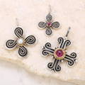 Semi precious stones: tourmaline, peridot, aquamarine, blue topaz, lemon topaz, green amethyst, amethyst, garnet, iolite, rhodolite, tsavorite.
