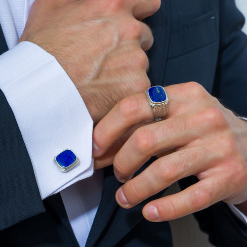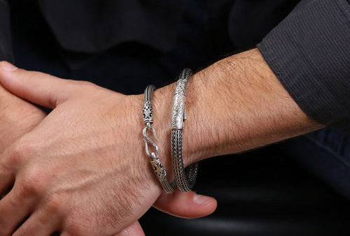 Pictured above: Hinged Triple Bar Ring and Byzantine Triple Chain Bracelet by Yianni