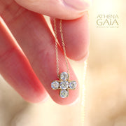 5 Stone Eastern Cross Gold Necklace - 14k Gold Necklace