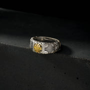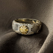 Alexander Golden Cross Woven Crest Ring - 18k Gold & Sterling Silver - Cigar Band Ring