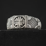 Alexander Cross Woven Crest Ring - Sterling Silver - Cigar Band Ring