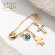 Al'Oro Female/Male Mati and Cross Filakto/Phylactery/Martyrika Pin
