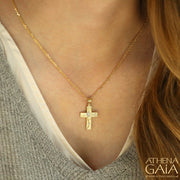 View full detailsThis 14k Gold Imperial Cross with pave set stones is a stunning piece available in your choice of yellow, rose, or white gold. With its elegant des...