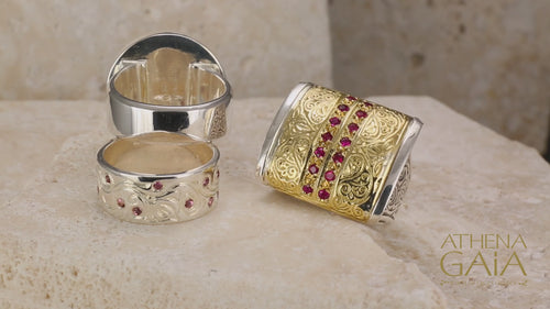 Anthemion Silver Ring - Sterling Silver Ring - Cigar Band Ring