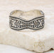 Depending on ring size, the pattern will be ended at different points at the back of the ring.