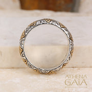 Byzantine Checker Thin Ring - 18k Gold & Sterling Silver Ring - Cigar Band Ring