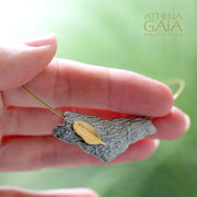The stainless steel cord shown is included. The leaf is solid 14k gold, adhered to 925 sterling silver.