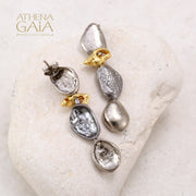 Conch Shell and Pebble Long Post Earrings - Gold Plated & Sterling Silver (In-Stock)