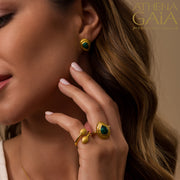 Cosmos Large Stone Earrings - 18k Gold Earrings - Post Earrings