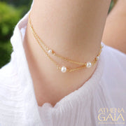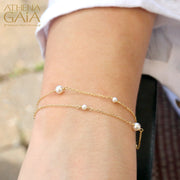 Double Strand Pearl Chain Bracelet - 14k Gold Bracelet