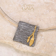 Dual Leaf Square Necklace - 14k Gold & Sterling Silver Necklace