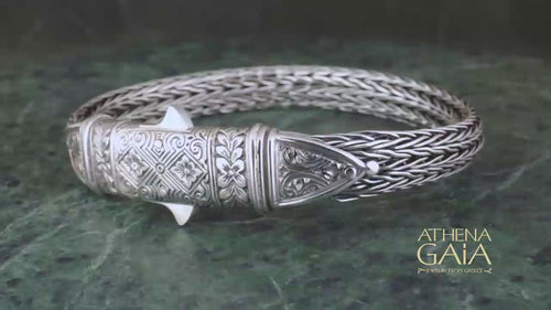 Etched Clasp Strap Bracelet - Sterling Silver Bracelet