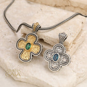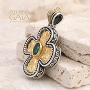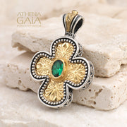 A masterpiece of Greek ecclesiastical artistry, this Etched Expanding Cross with a Gemstone of your choice is handcrafted in Greece by Gerochristo — one of the most celebrated names in Greek heritage jewelry. Rooted in centuries of Orthodox tradition. This cross carries the weight of history and the warmth of heirloom craftsmanship.
