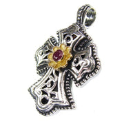 This Small Garden Shadows Rosette Cross is crafted with 18k gold and sterling silver, and features a center Ruby. Perfect for baptisms, special events, or daily wear.