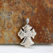 Garden Shadows Rosette Cross (Small) - Sterling Silver & 18k Gold - Flared Cross
