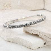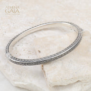 Greek Key Argonaut Bracelet - Sterling Silver Bracelet - Hinged Bangle Bracelet