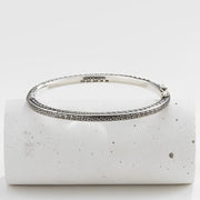 This Greek Key Silver Bangle Bracelet is beautifully simple and perfect for everyday wear on its own, or stacked with your favorite bangles. Crafted from 925 Silver it has an oval shape with an internal diameter of 2.3 inches, and hinges that open making it one-size-fits-all.
