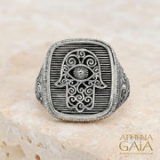 Hamsa Talisman Ring - Sterling Silver Ring - Signet Ring