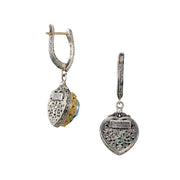 Iris Heart Pop Rocks Earrings - 18k Gold & Sterling Silver Earrings - Chandelier Earrings