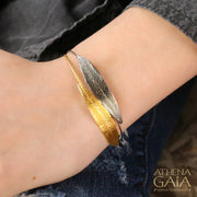 Long Leaf Strap Bracelet - Gold Plated Sterling Silver Bracelet