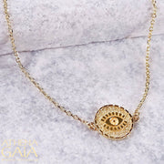 Mati on a Martile Disc Pendant Bracelet - 14k Gold - Evil Eye Bracelet