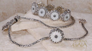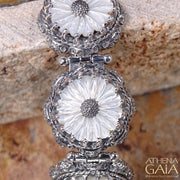 Mother of Pearl Flower Bracelet - Sterling Silver Bracelet - Link Bracelet