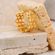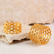 14k Gold Wide Honey Comb Open Band Ring