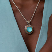 This Pop Rocks Synergy Border Heart Pendant is crafted from 925 Sterling Silver with intricate 18k Gold filigree, and a 15mm heart shaped Quartz Doublet of your choice. A simple, yet classically elegant piece, it's perfect for everyday wear or to add a pop of color to more formal attire. The bale opens for easy mounting on most chain styles.