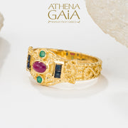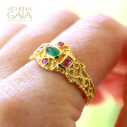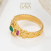 Regal Byzantine Bar Flank Ring - 18k Gold Ring