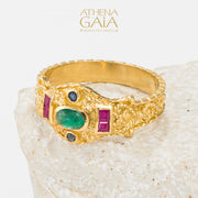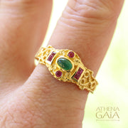 This Byzantine style Orthodox cross embodies classic elegance and timeless sophistication. Featuring Rubies, Sapphires and a center Emerald, it's a...