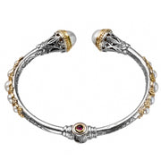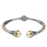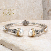 Santorini Pearl Sided Bracelet - 18k Gold and Sterling Silver - Hinged Bangle Bracelet
