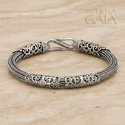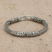 Silver Double Collar Strap Bracelet - Sterling Silver Bracelet