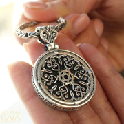 This beautifully detailed unisex Star of David Meander Pendant is crafted from 925 Sterling Silver with black Onyx. It's a bold yet elegant piece with a large bale that will accommodate most chain styles. This pendant is perfect for daily wear, and adds a touch of refinement to any outfit.