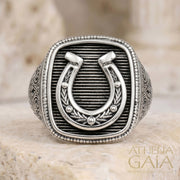 The Horseshoe Talisman Ring - Sterling Silver Ring - Signet Ring