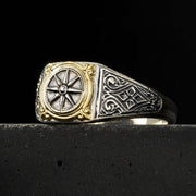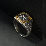 Vergina Square Sun Ring - 18k Gold & Sterling Silver - Signet Ring